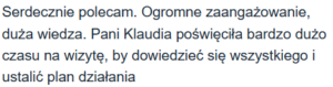 ✅ wizyty kontrolne (po 45–60 minut każda) – wspólnie ocenimy postępy, skorygujemy plan i zadbamy o ciągłość działań.